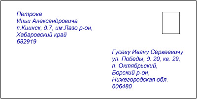 On blank envelopes where there are no designated fields for filling in the address, the same order of writing the address is preserved as outlined above: